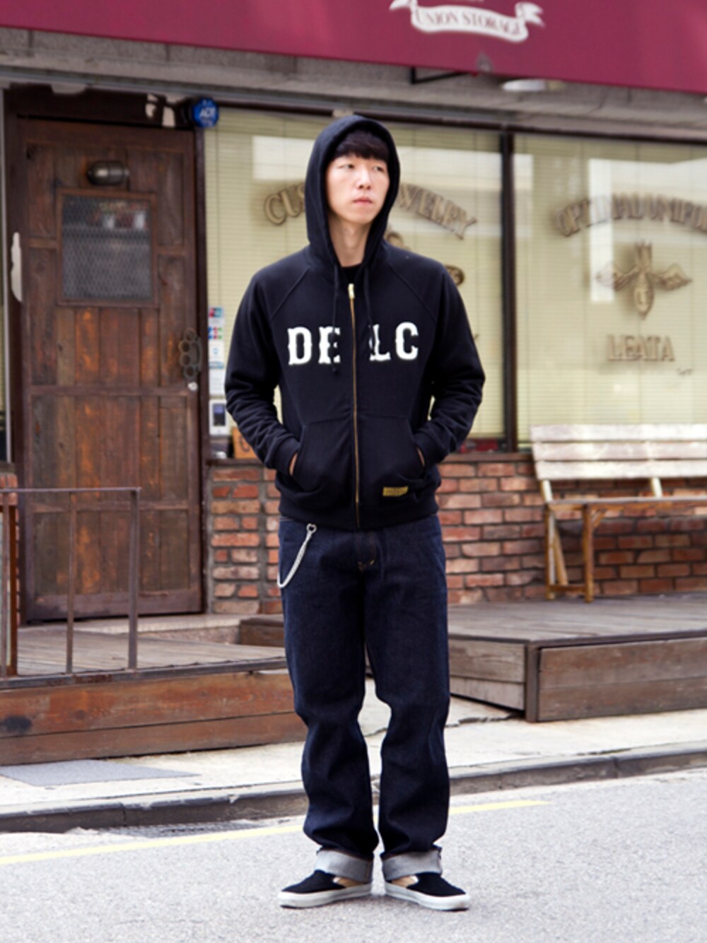 안녕하세요. 압구정 Stage9 매장 스탭 김우진입니다. 2014 F/W 2차 발매 상품인 D.E.L.C Zip up hoodie black , Rigid selvage denim straight pants 로 코디해 보았습니다. Stage9에서는 구매고객에 한해 리타의 이번 시즌 책자형 룩북과 스티커, 소정의 사은품을 나눠드리고 있사오니, 여러분의 많은 방문 부탁드립니다.
