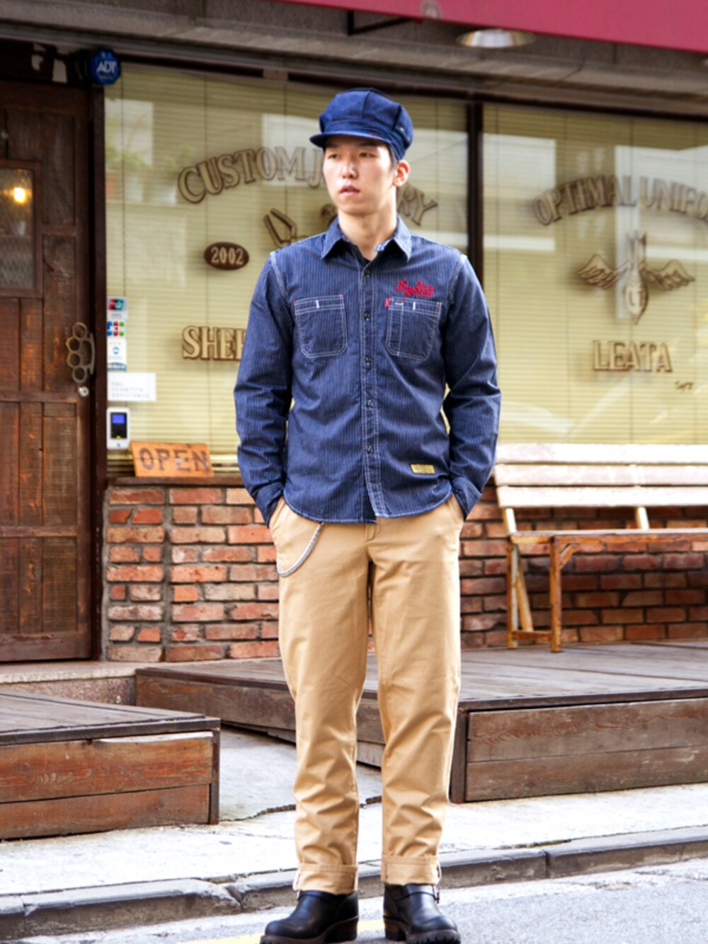 안녕하세요. 스테이지9 압구정점 매장을 지키고 있는 김우진입니다. 아침저녁으로 기온이 많이 떨어졌는데, 아직도 낮에는 따뜻한 날씨가 계속 되고 있네요. 가벼운 느낌의 denim work shirt와 chino pants, denim work cap으로 코디해보았습니다.