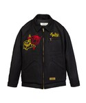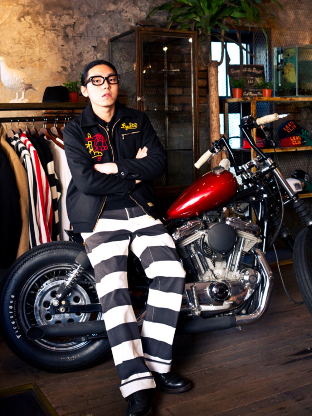 안녕하세요. 스테이지9 압구정점을 지키고 있는 김태수입니다. 울 소재를 사용해 보온성이 탁월한 D.E.L.C. wool mechanic jacket black과 터프한 매력이 넘치는 Jail wide pants black/white로 코디했습니다.