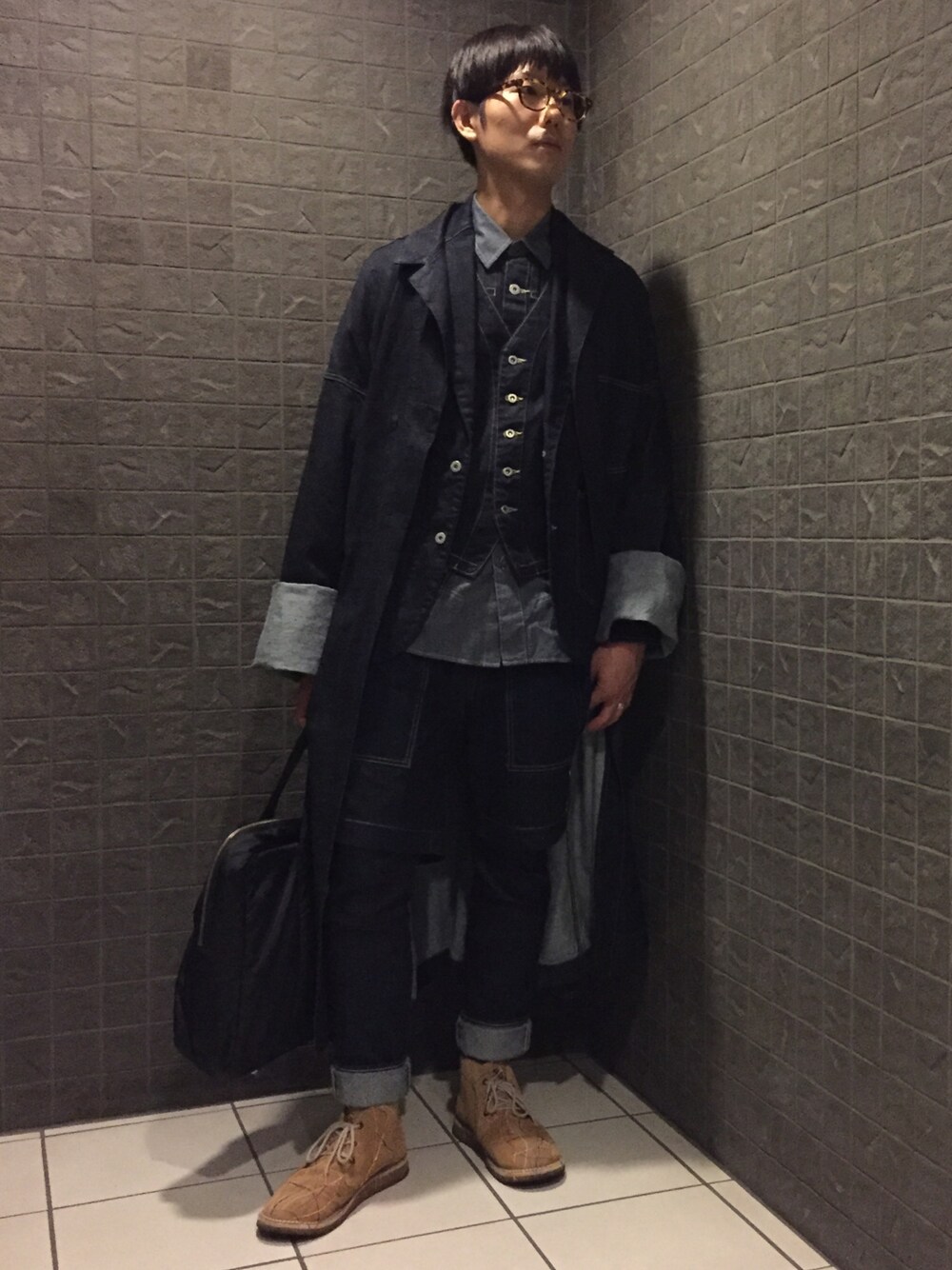 やっと涼しくなってきて秋冬物が着られる季節になってきたので、着てみました。 中に着たデニムベストとデニムテーラードジャケットは2016SSの物ですが、それ以外のデニムの服は全て2016-2017AWの物です。 このLOOKはGANRYUの2016-2017AWの東京コレクションのショーの画像を見た時から着たいと思っていたもので、デニムガウンがとても新鮮で今シーズンの中でダントツ1位のアイテムだと個人的に思ってます笑