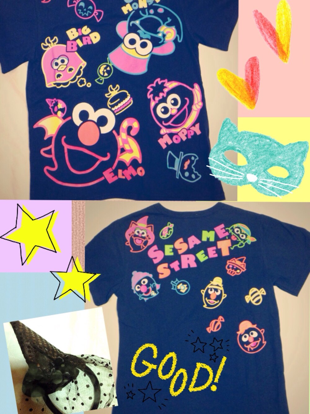 ハロウィン&ホラーナイト行きました♡ 見切れてバックプリントがメインみたいに なっちゃいました。。 100均のハットカチューシャも 意外と活用できます(*^_^*)