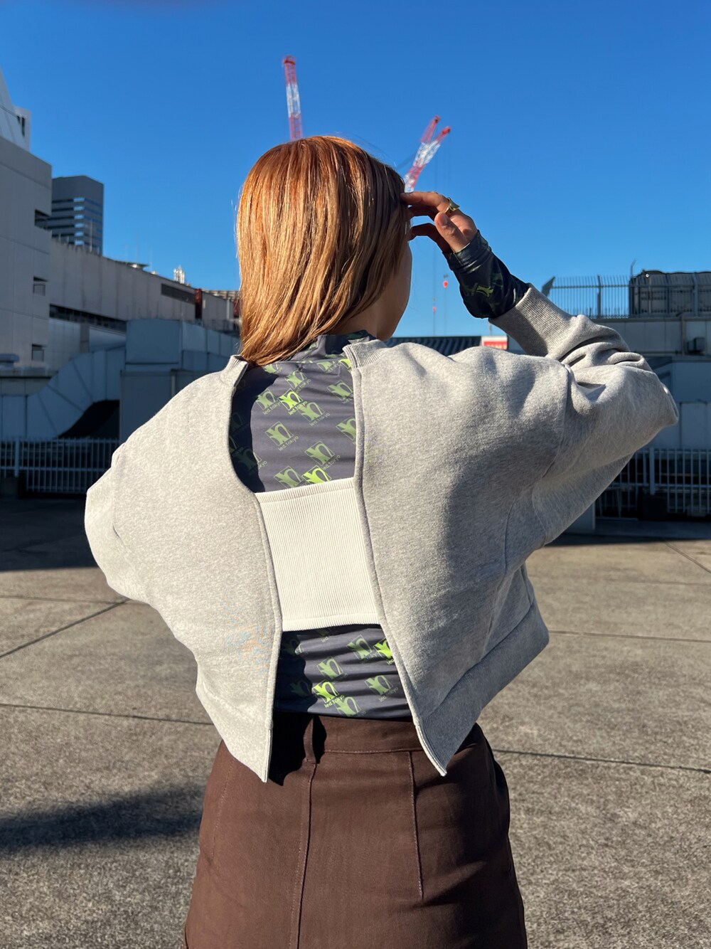 ledtokyo 新宿店のスウェット「【led.tokyo】×NO PANTIES BACK RIB SHORT PULLOVER 'sixth"」を使ったコーディネート