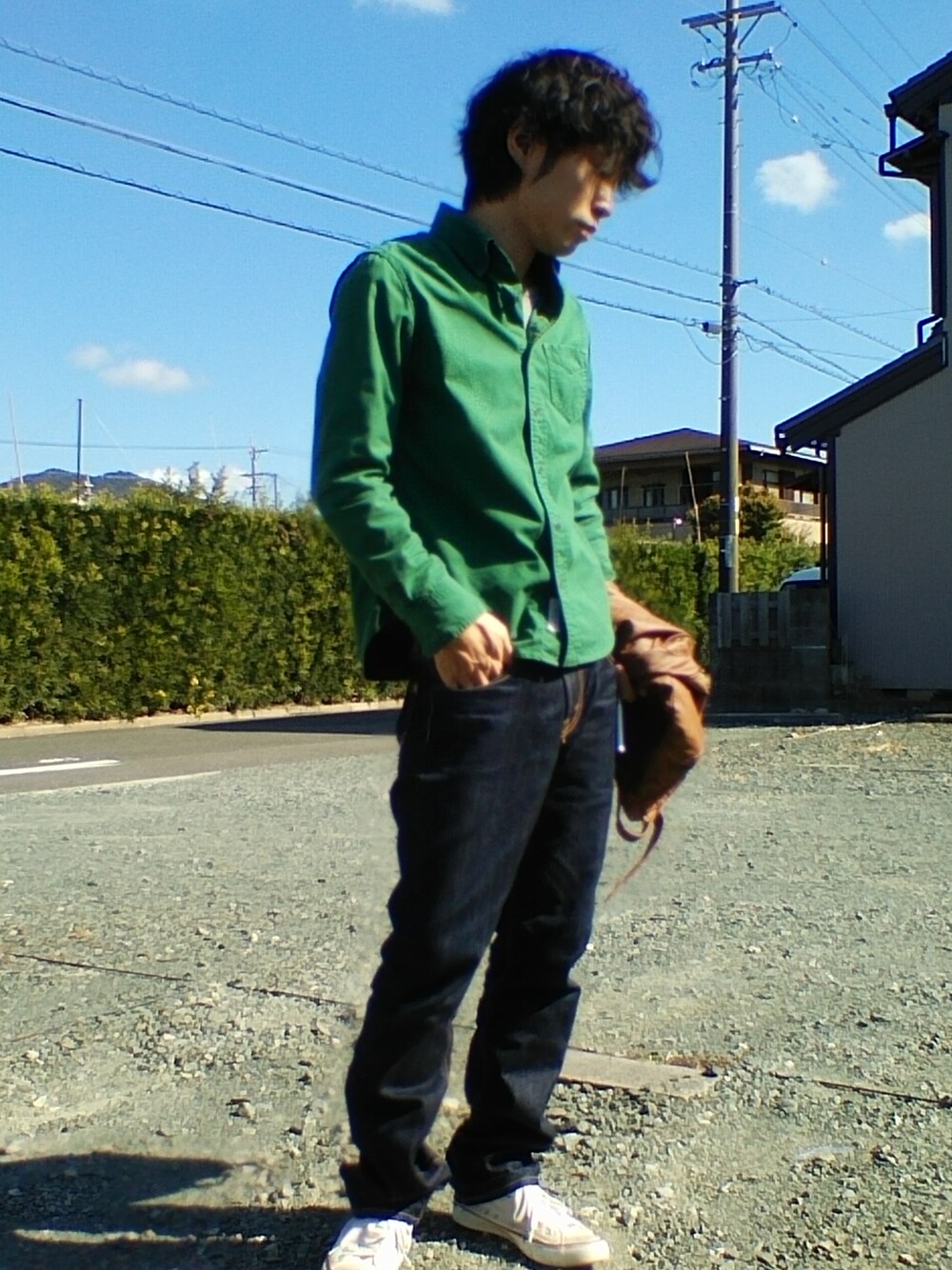 シャツコーデ グリーンのシャツにデニム合わせて、アウターはレザージャケット…暑くてまたまた手に持ってしまってますが(笑) 割りきれない気持ちって有りますよね💦 色々な場面で、そんな感じなんです… 正直疲れます(´д`|||) 今から、お酒片手に借りてきたDVD見て現実逃避です(笑)
