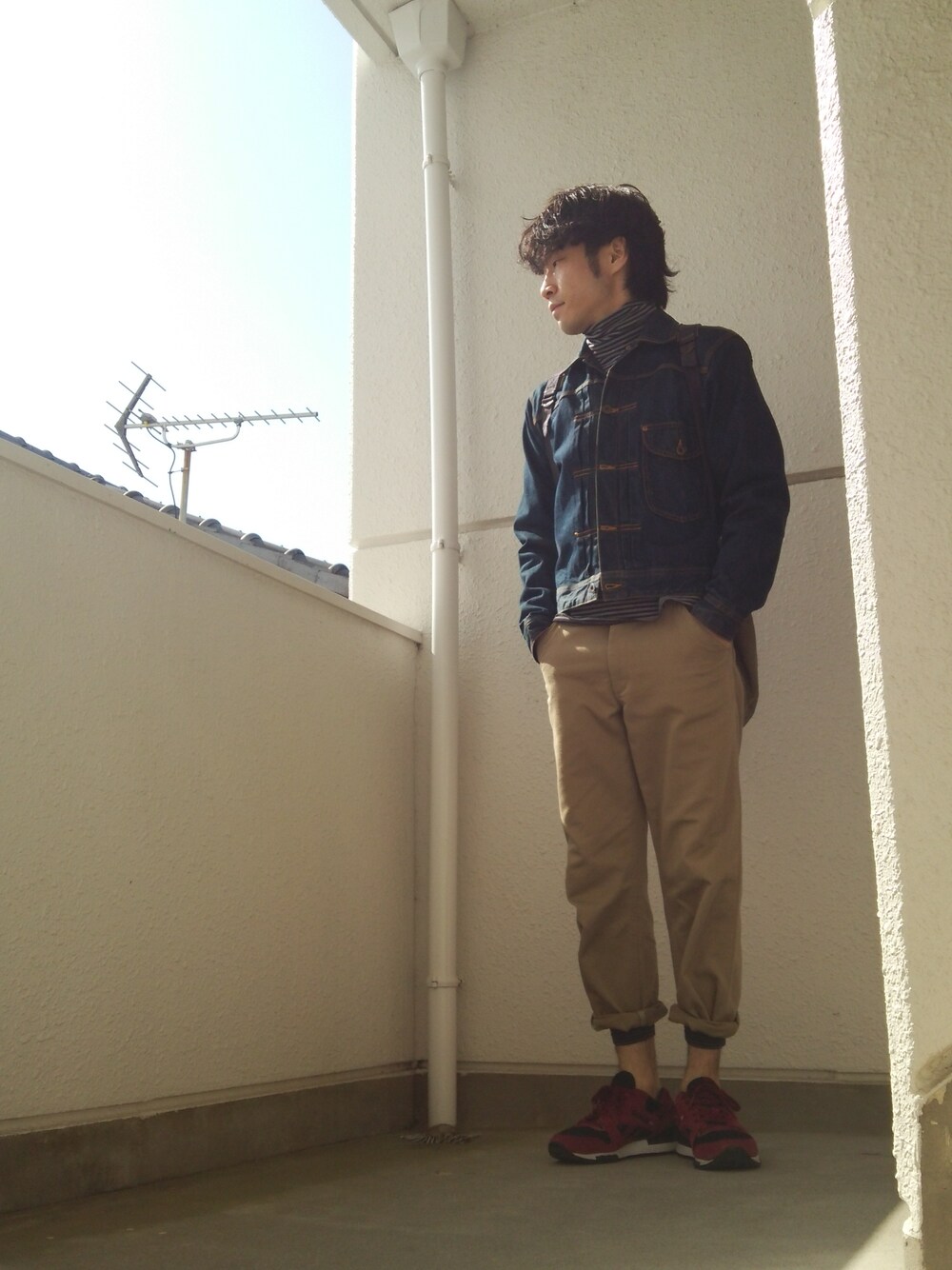Lee 1st デニムジャケット ボーダーのタートル ペインターパンツをロールアップル タイツにスニーカーで、アメカジスタイル! サウザント・サニー号❗ 残念ですがお仕事で行ったので 1枚撮って終了でしたけど。・゜゜(ノД`)