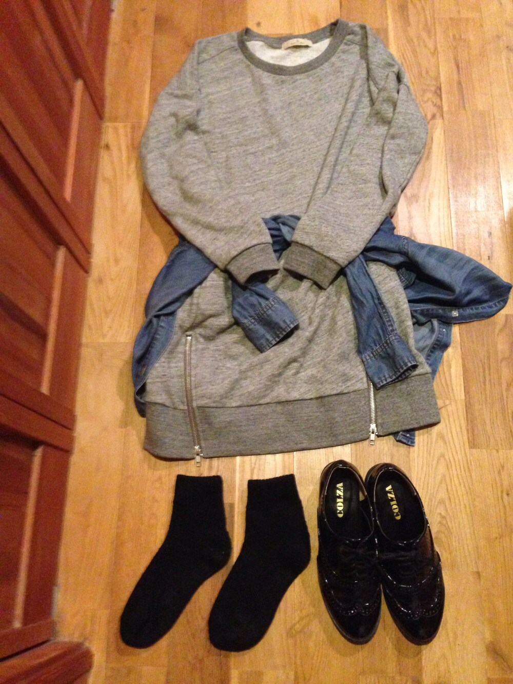 リラックスコーデ ワンピース:GLOBAL WORK デニムシャツ:URBAN RESEARCH 靴下:チュチュアンナ シューズ:心斎橋の靴屋さん