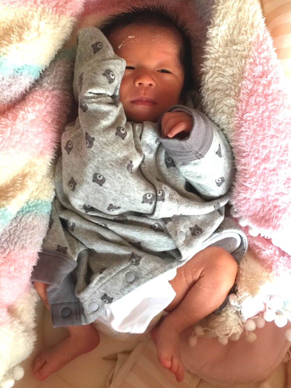 グレー系のロンパースを着用したキッズの秋コーディネートの1枚目の写真