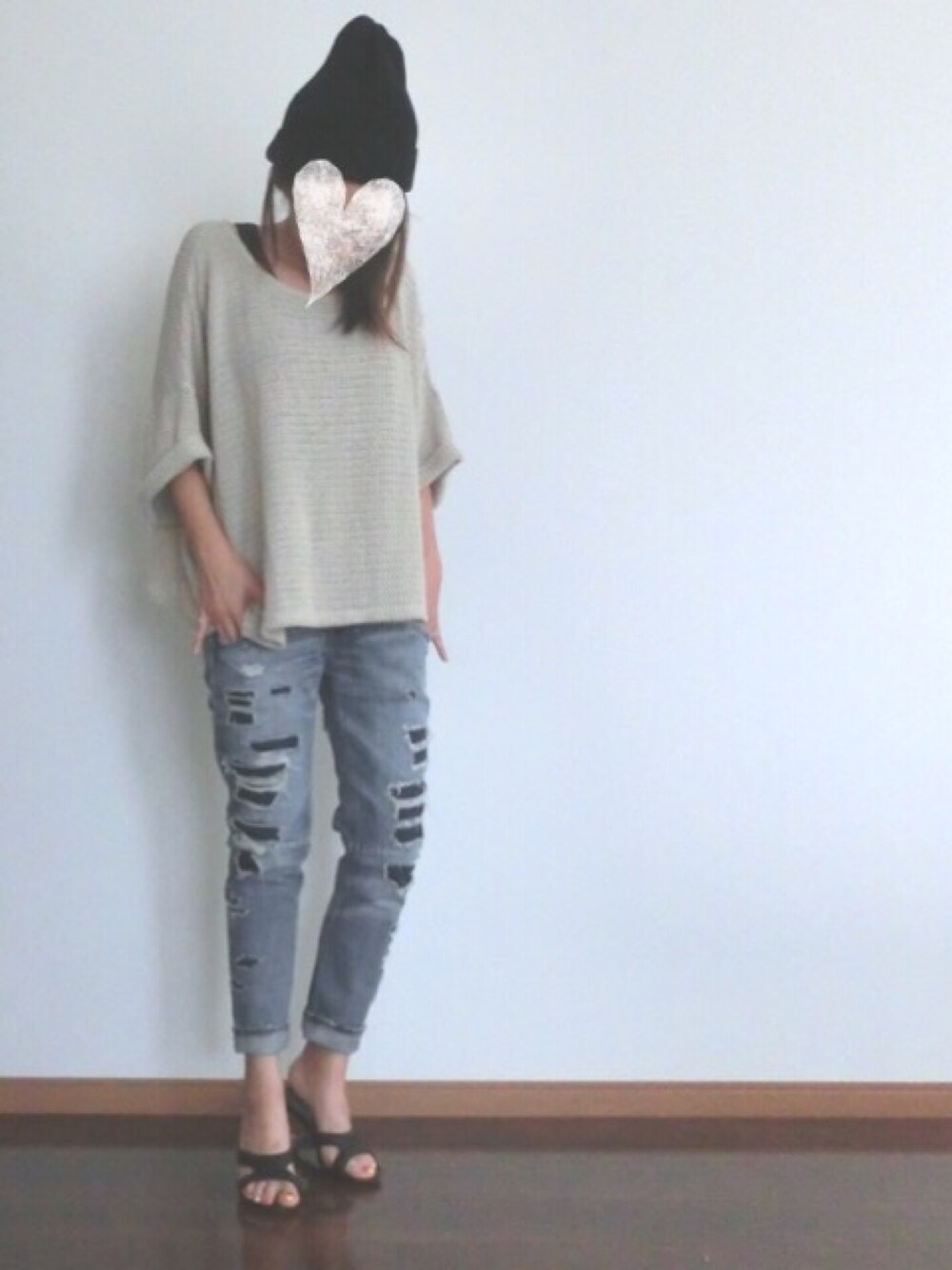 小指立っててごめんなさいwww キモいけど載せちゃいます(´・_・`) 今日はかなり前に買ったH&Mのサマーニット♡ 着心地もユルい感じも◎ インナーに黒タンク入れてます。 真夏はちょっと無理だけど、今時期までなら着れるから今のうちっ!