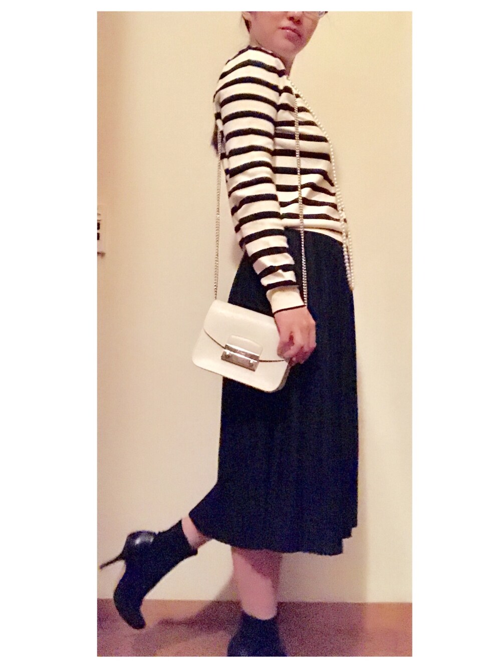 今日は暖かでしたね。 そんな休日は、あえてモノトーンなコーデでした。 ZARAのボーダーニットは、ウールが入っていないので、こんな暖かな日でも着れてしまうお気に入りニットです。 フルラのミニバッグを合わせて♡ 今日も見ていただきありがとうございました。