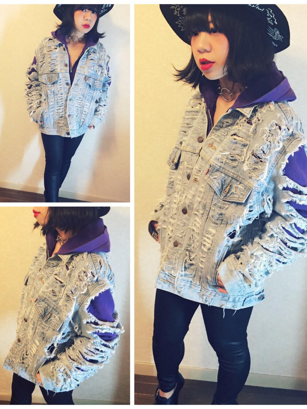 今日もメルカリで断捨離😿💞 日本では珍しい、ラミスカーミスの、ダメージデニムジャケット!!!!! くぅ!!!! やっぱり、可愛いなぁ。💘💘💘 リーバイスのデニムをリメイクしたものなんですよ。 欲しい人に、届け〜〜💘💘💘💘