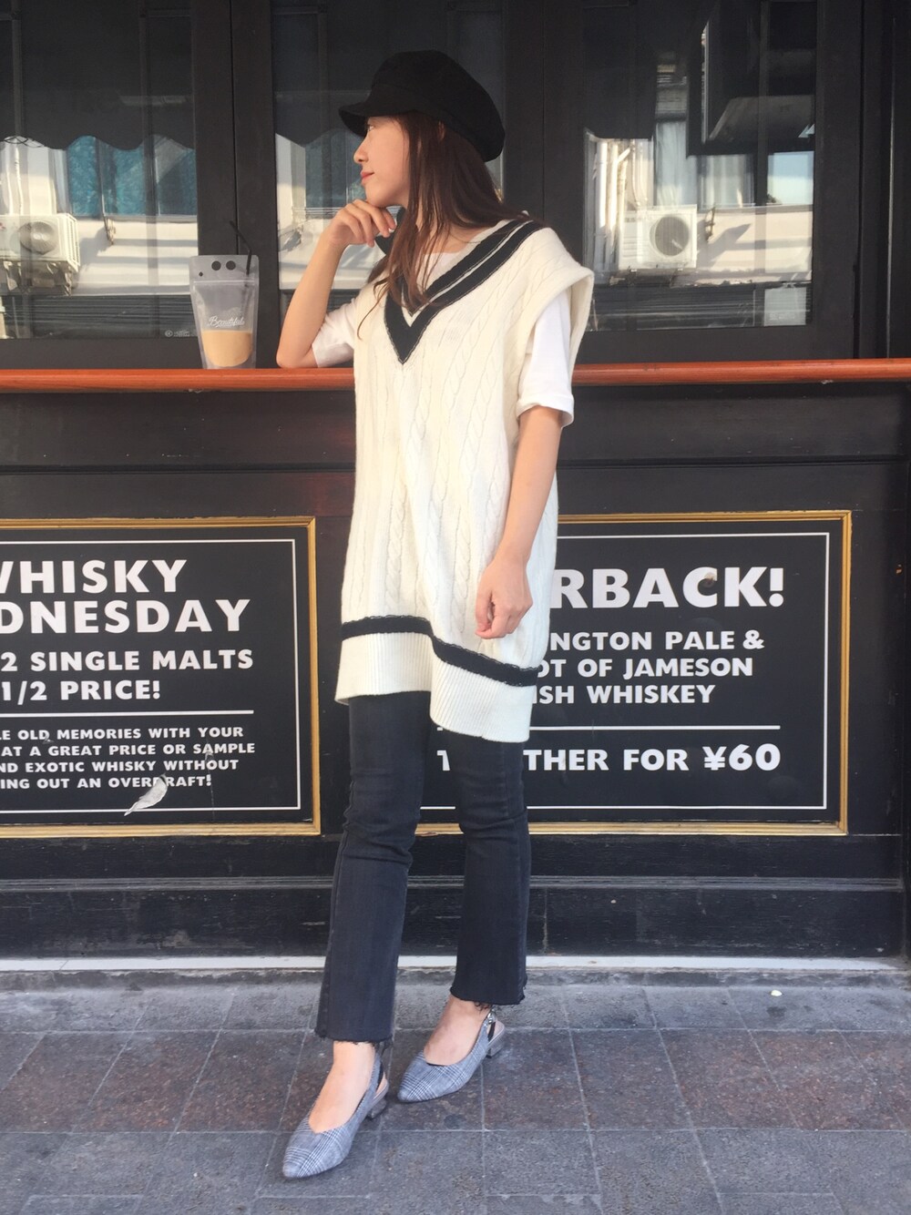 26度☀️ T恤✖️羊毛背心✖️炭黑色嘘嘘边牛仔裤 继续休闲风,羊毛背心本季新入,非常喜欢~放假就爱到处乱逛❤️