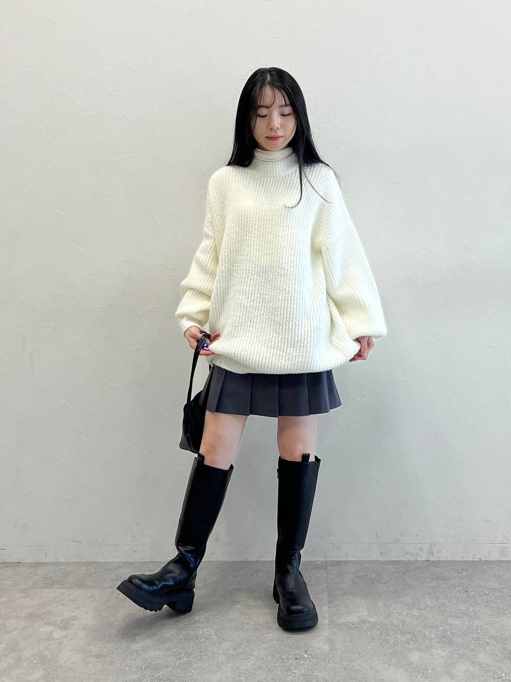 柔らかい肌触りの良いオーバーサイズのニット スカートと合わせるのが可愛い!