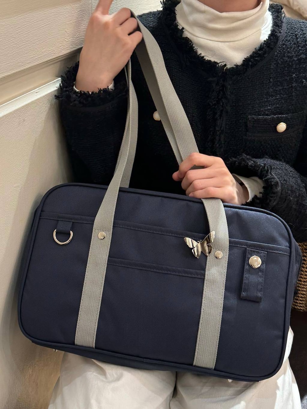daylifeのブランドロゴバッチ付き! キーホルダーを付けれる場所もあって ポケットも外側と内側にたーーっくさんあって収納力抜群! 学生の頃持っていたスクバよりは2回り小さめ だけど、iPadや小さめのパソコンは余裕で入ります✨ 普段使いや学校ようにもおすすめです!