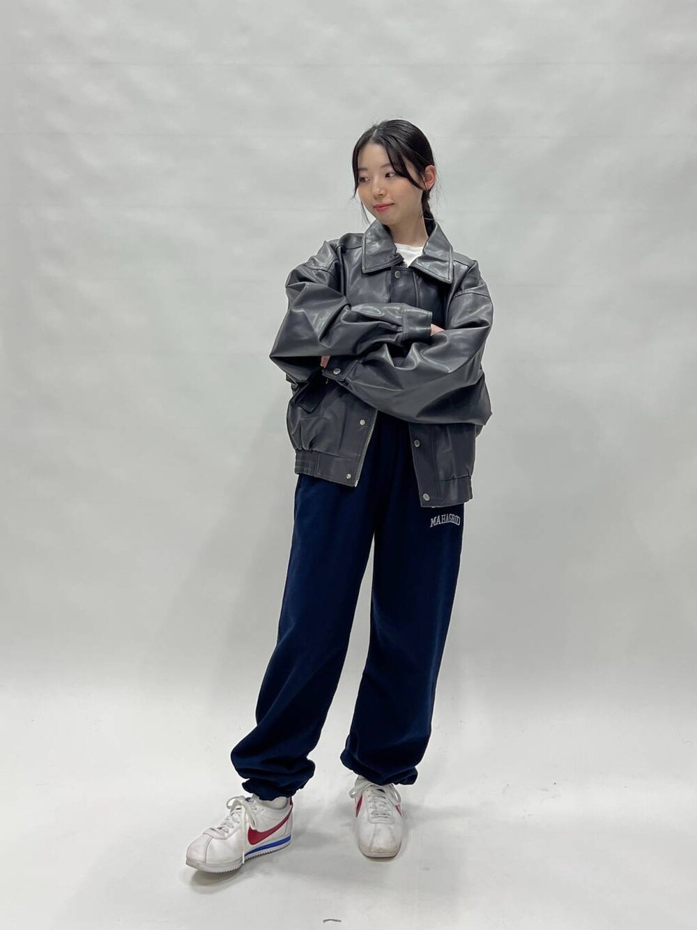 春でもレザーがかわいい これはフリーサイズで低身長の私でも丈が長すぎなくて 色も珍しいグレーでかわいい スウェットを履く時が多いから レザーでだる着感を無くすのいい感じ⭐️