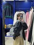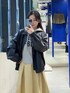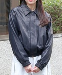 軽くて柔らかい生地感のフェイクレザージャケット インナーに着ているパーカーは薄めなので嵩張らない!