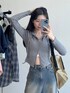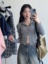 ニットカーディガンは ダブルジップでフード付き さらに、サイドが短くなっていてラインを綺麗に見せてくれる効果も! 伸縮性抜群で窮屈無く着用できます。