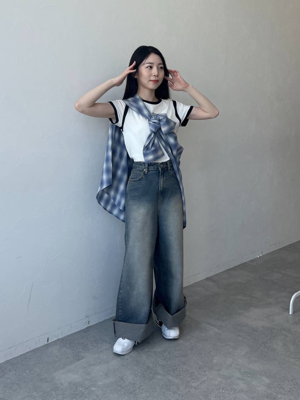 デニムとチビTだけでも充分に可愛いけど 色のあるシャツを取り入れるだけで雰囲気ぐ一気に変わります!