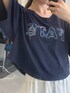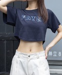 トレンドのミニ丈に、裾が丸まったシルエット ヴィンテージ感のあるデニムロゴが可愛い1枚