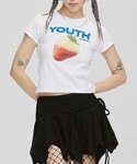 いちごがプリントされた可愛いTシャツ 大きすぎずフィットする形がラインを綺麗に見せてくれるるトップスです 下はゆったりしたボトムスと合わせるのがおすすめです