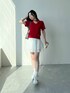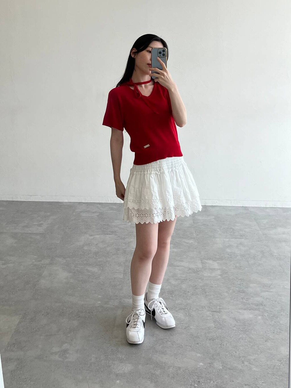 これ一つで韓国コーデで仕上がる マフラー付きトップス サマーニットで生地は薄めなので涼しく快適です マフラーはリボンにして結んでみたりとアレンジもできます