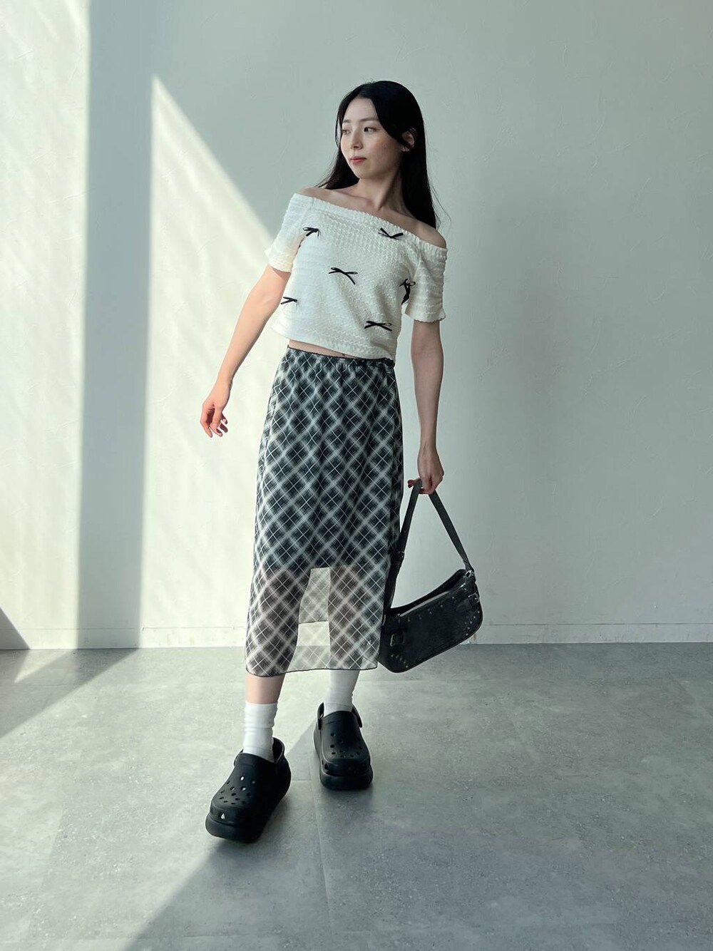 みれい(ALAND 本部)のTシャツ/カットソー「3.3 Field Trip/リボンオフショルT」を使ったコーディネート