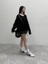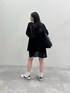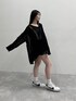 オーバーフィットのニットをワンピースのように着たコーデ