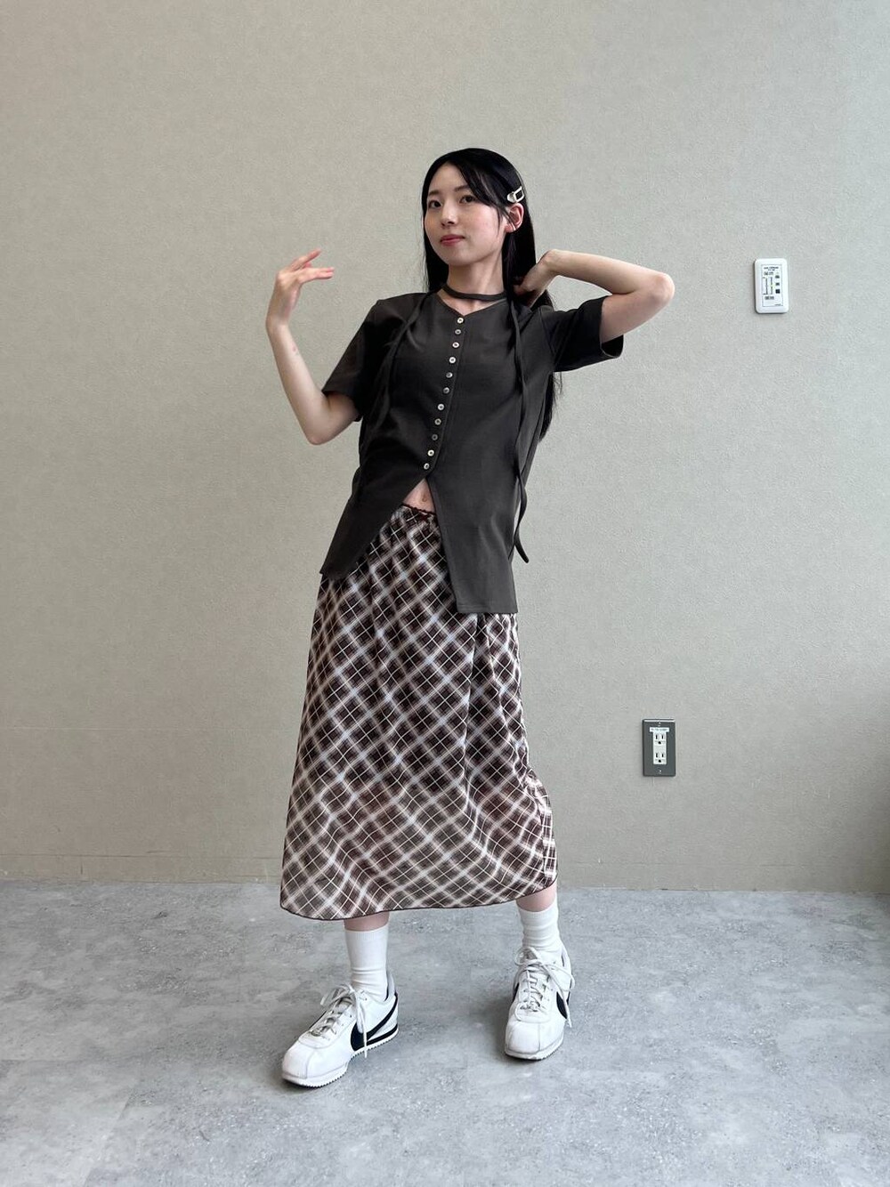 みれい(ALAND 本部)のスカート「3.3 Field Trip/シアーチェックスカート」を使ったコーディネート
