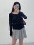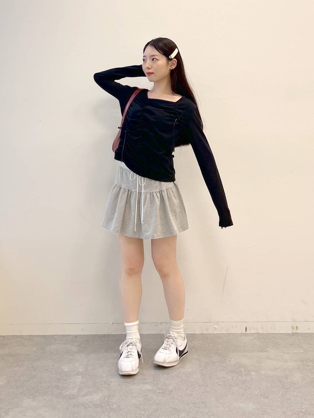 リボンとシャーリングのついたシンプルで可愛いトップスです