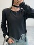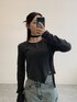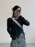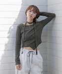 まだまだ流行りのマフラー付きトップス 裾がアンバランスになっていて、ワッペンプレートが付いているのが小さなポイントで可愛い