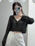 袖が長めで着丈は短めなので バランス良く見える形。 メッシュニットなので、夏場はキャミの上から羽織って 冬場はタートルネック上から羽織ってコーデのワンポイントやアクセント使いとしても⭕️ ボトムスは内側に入っているゴムで調節可能 ボタンで止めるタイプなのでズレたりする心配なし! かなり絞っても後ろから見た時に、クシュクシュしないのが嬉しいポイント☺️ オールシーズン使えるアイテムです