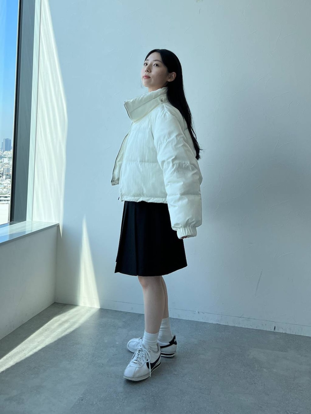 フード取り外し可能な ショート丈ダウン 裾は紐で絞れるので、極寒でも風が入ってこないようにま出来ます また、シルエット変化も楽しめます
