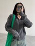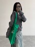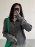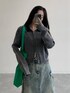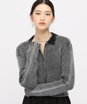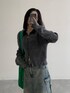 ダメージの入ったカーディガンに色褪せた感じがトレンドっぽいデニムのスカート