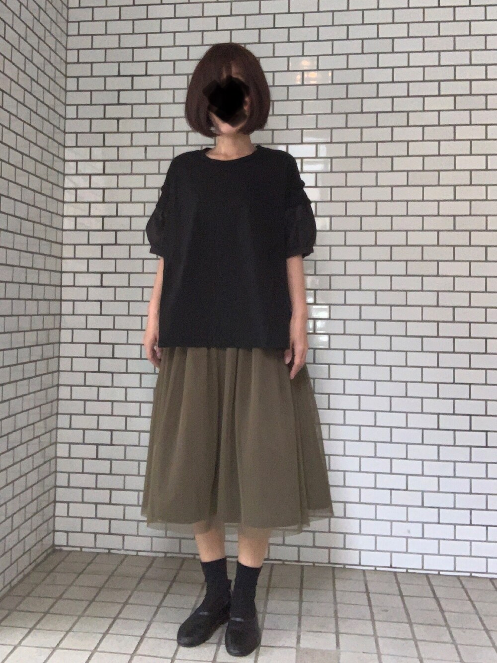 トップスの袖がパフパフすぎて カーディガンを着ると二の腕がもりもり スカートはリバーシブルだけど 裏返して着たことはないなぁ なんかどこにでもいるような人に仕上がりました😊