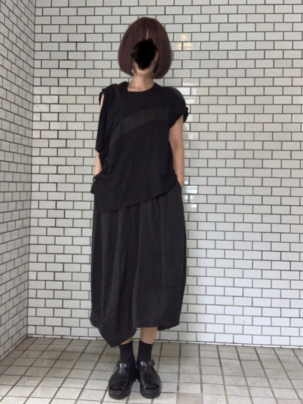 ブラックコーデ このカットソー、右脇が深く開いている 下着が見えるのもだらしないなぁ ということで、人生初のブラトップ んー、楽なのはいいけど これずっと着てたら、胸のお肉は背中にいくな たまに着るのがいいっぽい😊