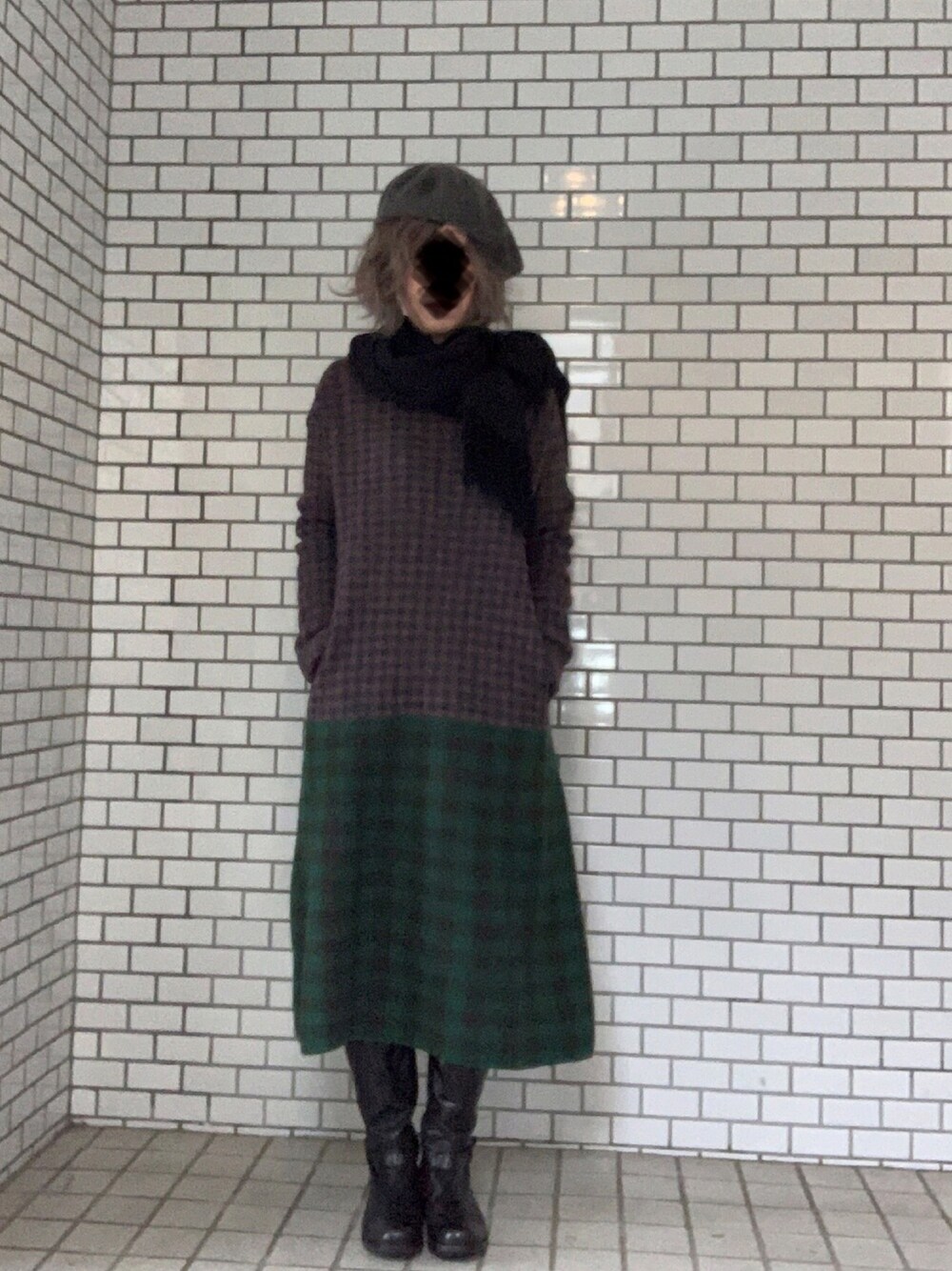 ふけみんのワンピース「ジャカードニット馬比古ワンピース」を使ったコーディネート