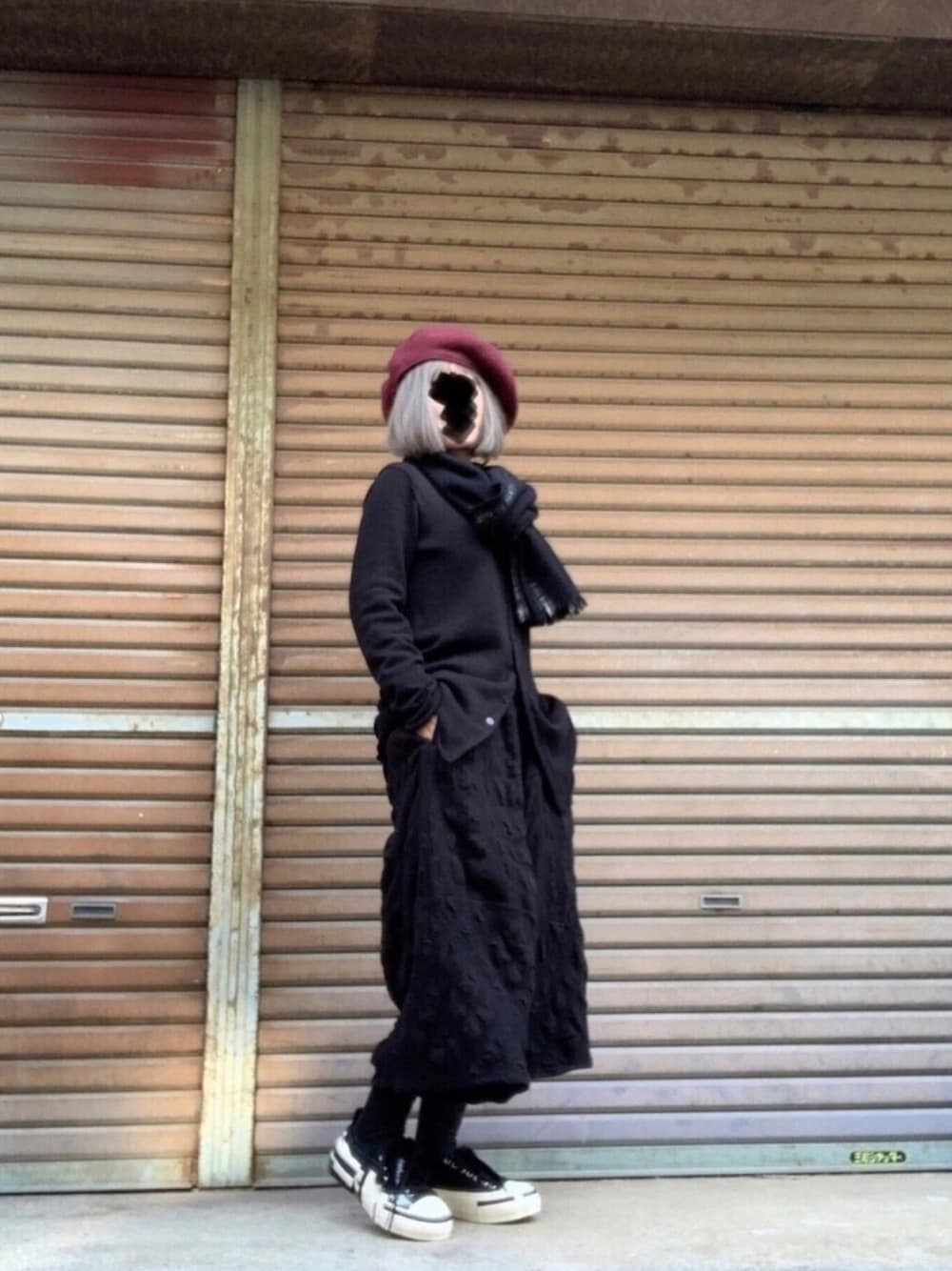 ブラック×ワインコーデ ずーーーっと狙ってたスニーカー 23だと先があたるのでハーフサイズ大きめで😊 お取り寄せしてもらい無事ご購入です ベレーはnanoのメンズものだったかな 例の如く、いつ買ったかは不明💦
