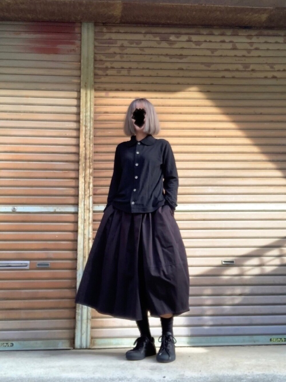 ブラックコーデ 丸襟が好きだった頃の唯一残してる服 好きな服と似合う服が違う年齢になってるので そろそろこのブラウスもお疲れ様かな 久しぶりになんの予定もない土曜日 衣替えもあるし、片付けでもしましょうかね