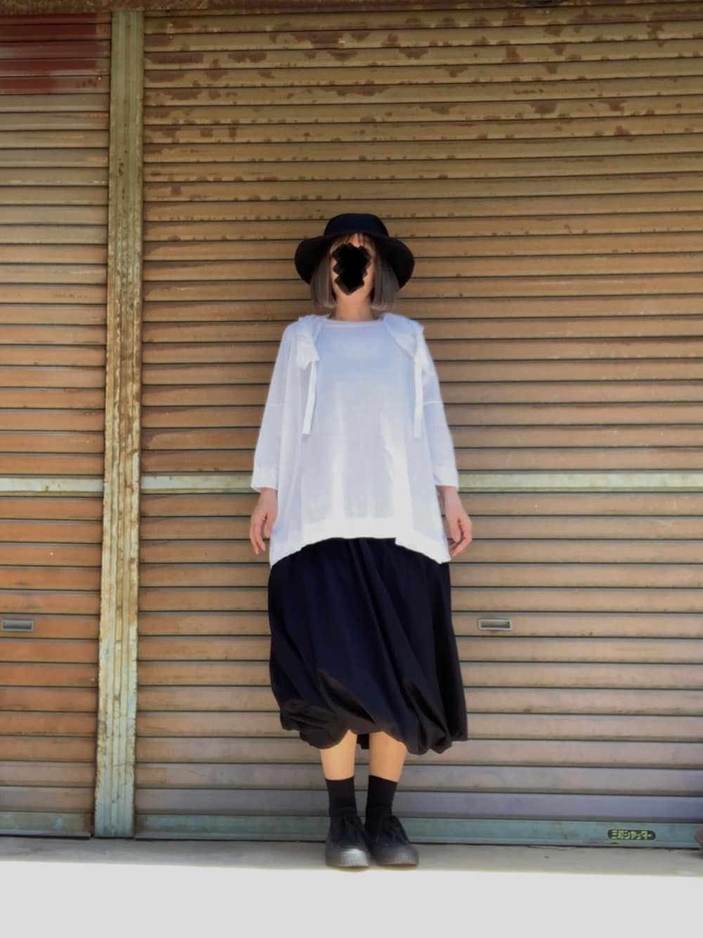 ふけみんのハット「リヨセルラミーナチュラルローン くしゅくしゅハット」を使ったコーディネート