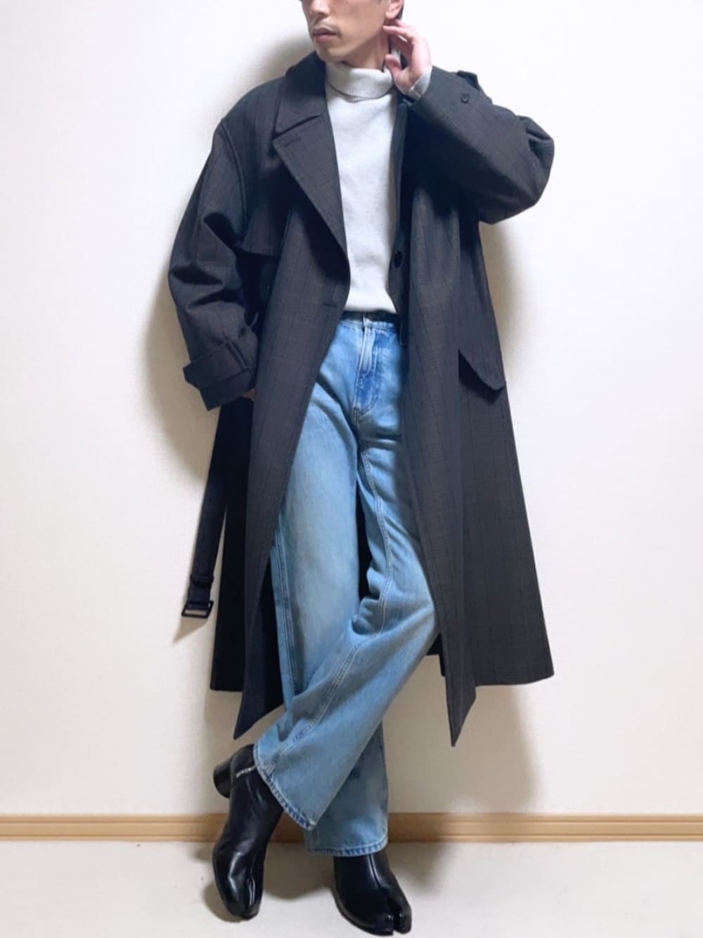 SHOTARO のトレンチコート「WOOL CHECK TRENCH COAT」を使ったコーディネート