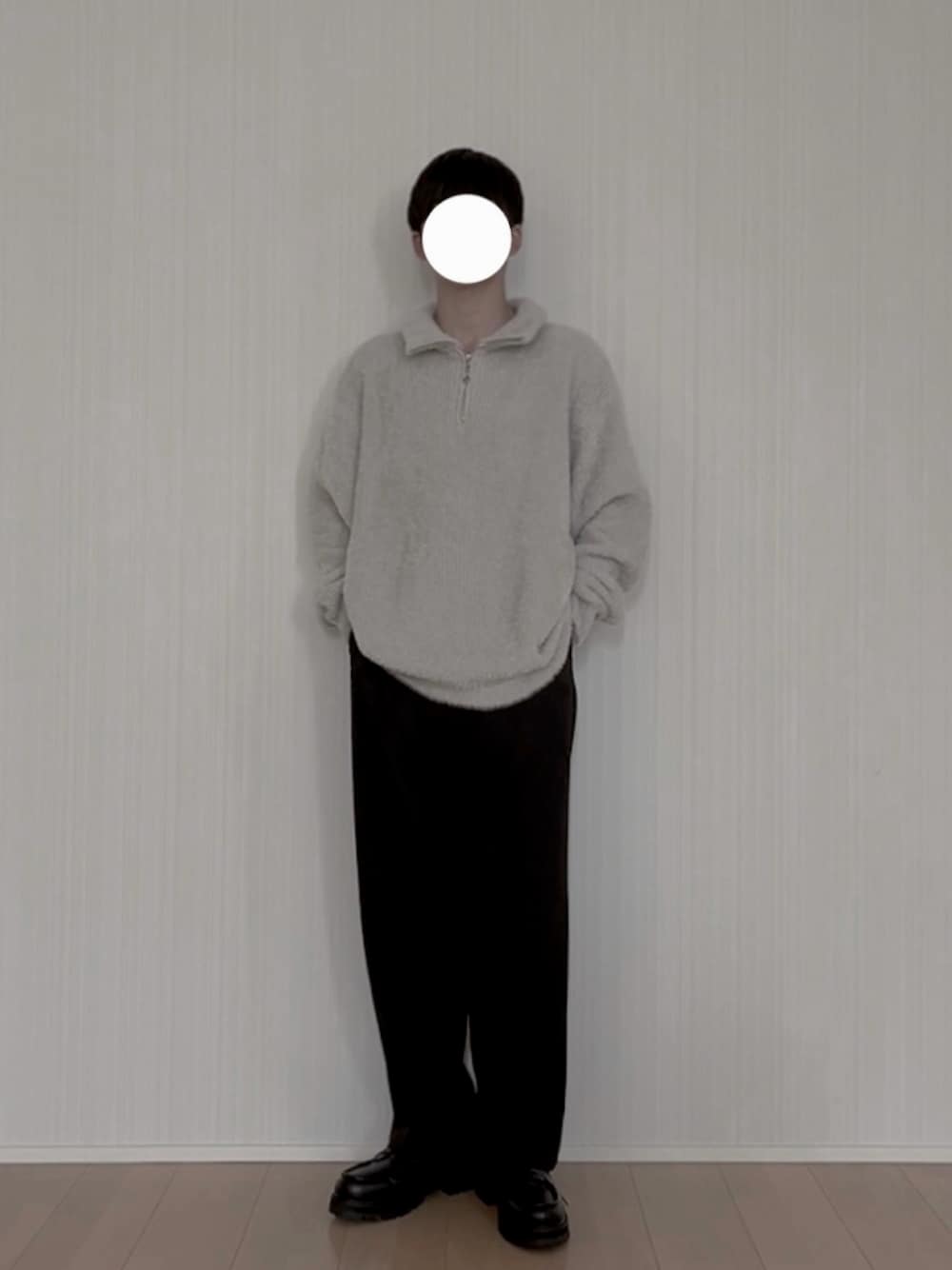 Hayatoのニット/セーター「シャギー ルーズハーフジップニット」を使ったコーディネート