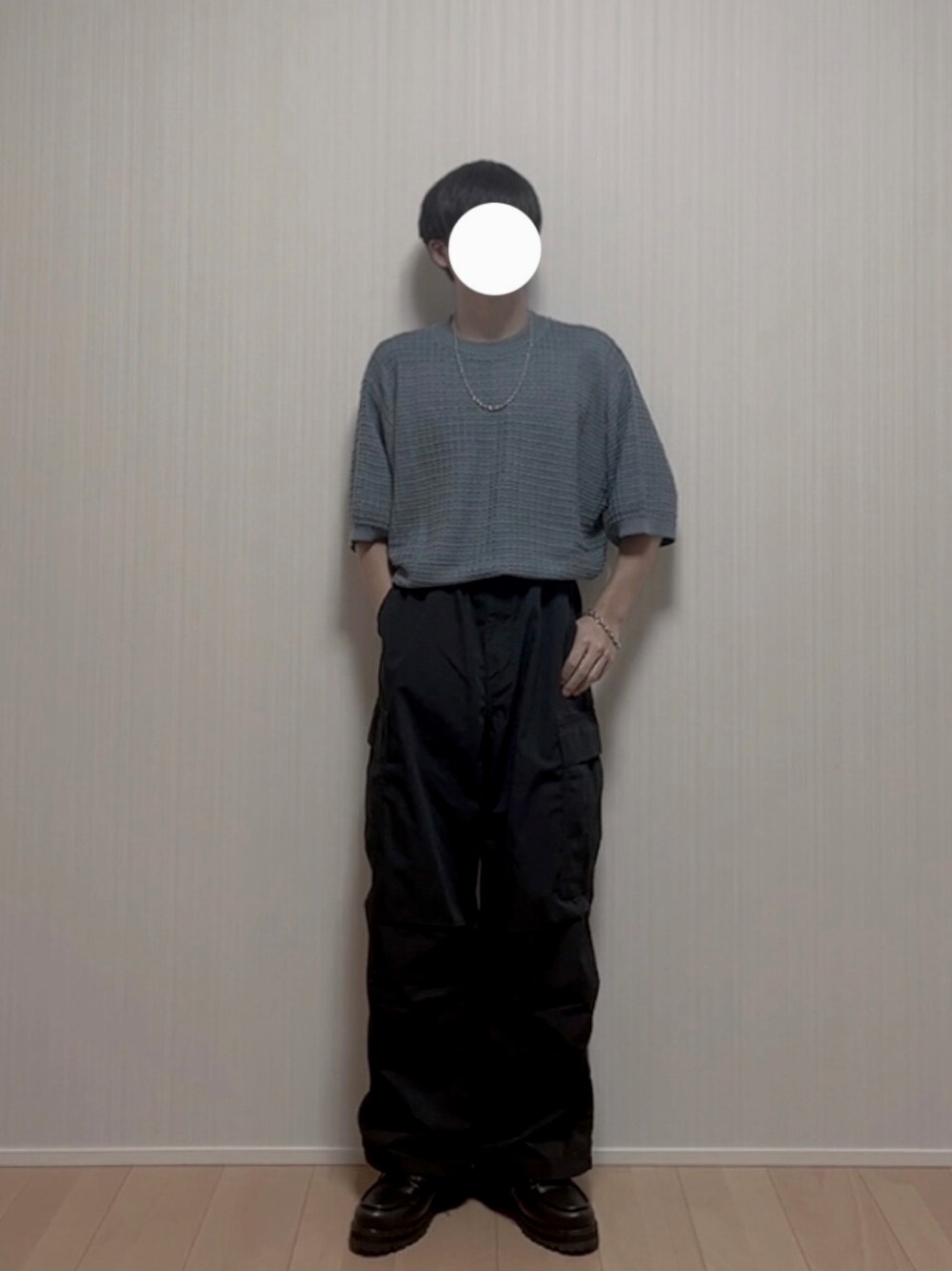 Hayatoのカーゴパンツ「スーパーワイドカーゴパンツ BLACK Mサイズ」を使ったコーディネート
