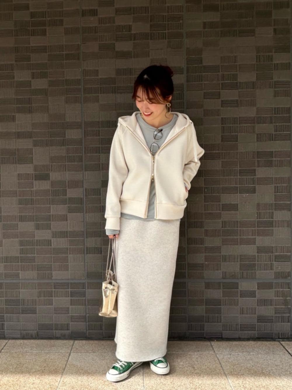 30代/155cm/骨格ストレート/普段サイズ36 【カルゼダンボールパーカー】 サイズ感:レイヤードがしやすいゆとりのあるサイズですが、大きすぎません。 素材感:なめらかで柔らかいです。 着用感:程よい丈なので、ワイドパンツやフレアスカートとの相性も良いです◎ ゴールドパーツなど、きれいめ要素もあるのでカジュアル苦手な方にもおすすめです。 【ジャガードダンボールタイトスカート】 サイズ感:腰で落として履くサイズで、ゆとりがあります。 素材感:ダンボール素材でしっかりと肉厚ですが、もちっとソフトな素材です。 着用感:腰回りをスッキリきれいに見せてくれます。 トップスも選ばないので着回しできます。