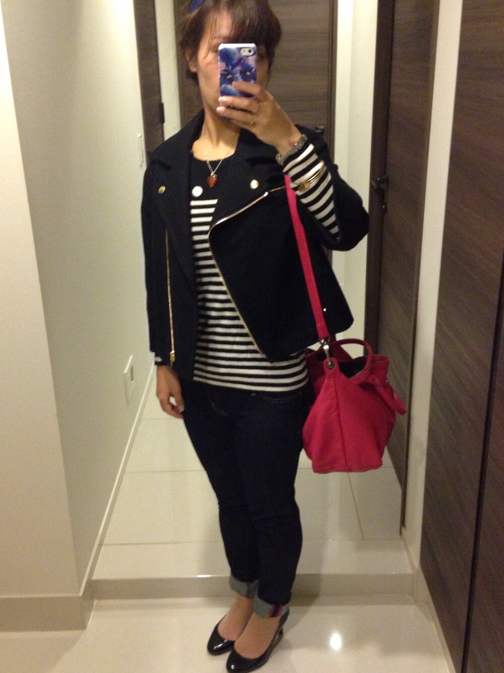 いいね、セーブ、フォローして下さる皆さま!いつもどうもありがとうございます☺️✨ 今回は珍しくデニムです。普段スカート派なので慣れないです(笑)デニムのピンクのステッチが可愛いのでピンクバックを合わせてポイントにしてみました🌟 今年入手したウールライダースでdaisuさんのアウターフェスに細々さんかさせて頂きます!これから冬を越すことを考えて、首元のファーはまだ外しておきます