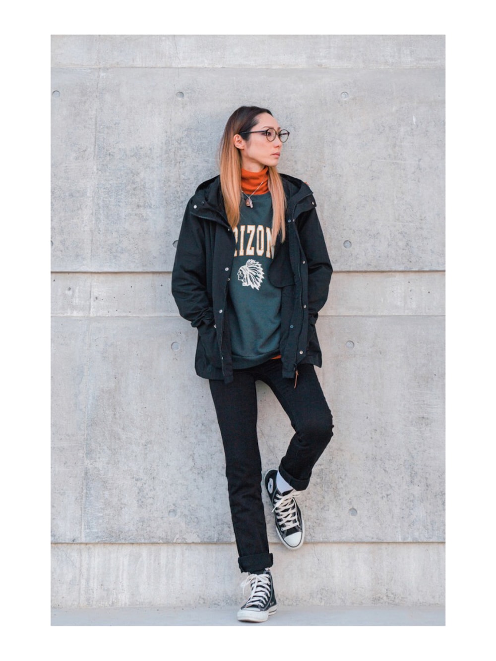 LEILAのメガネ「【Combination Slim Airframe】コンビネーションスリムエアフレーム」を使ったコーディネート