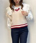 cocoのベスト「バイカラーラインルーズベスト」を使ったコーディネート