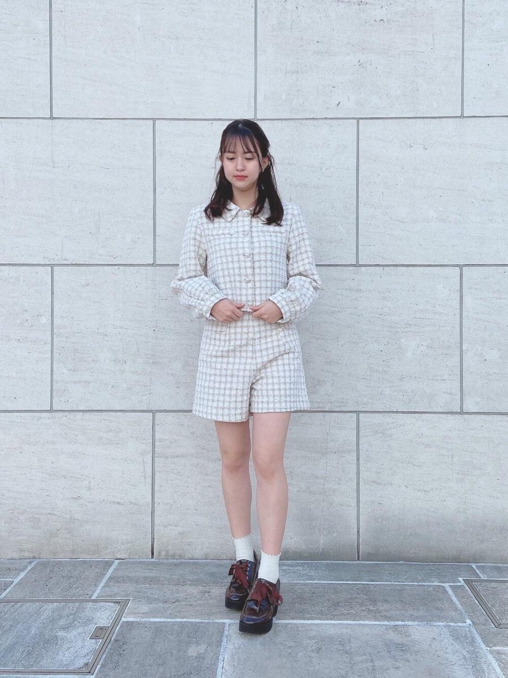 新作のツイードセットアップです✨ 今の時期も春もお使いいただける生地感です!いつも人気のツイードでベージュのお色味は少し黄色っぽく珍しい感じになってます🌟 155cm mサイズ着用