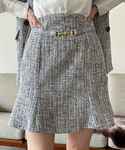 ツイードのスカートやトップスの袖の光沢感で可愛らしい女性を演出しつつもデコルテオープンやお色味で大人っぽくなれるスタイリングです🥰