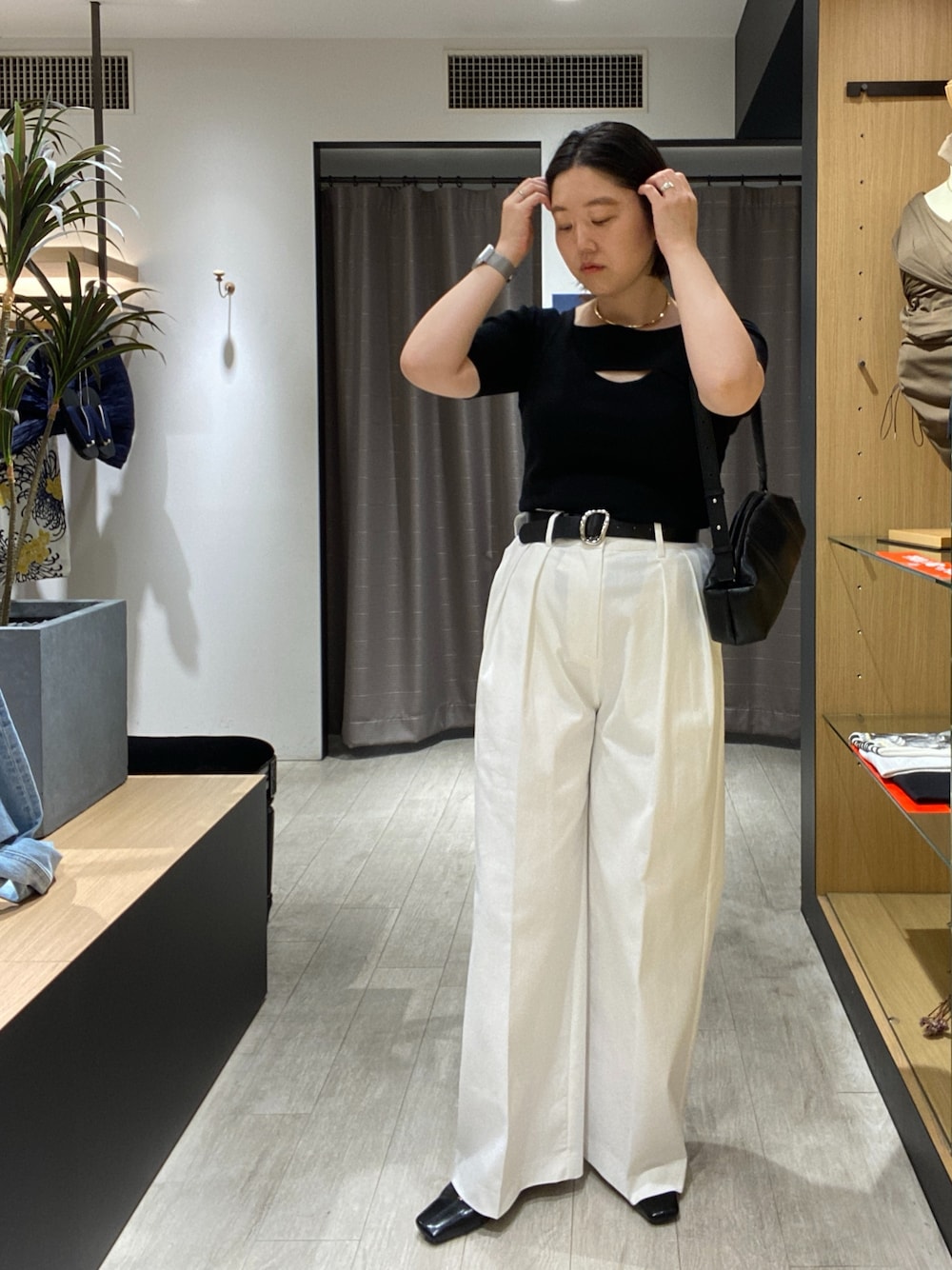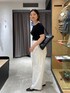 パンツはコットン素材なのに、分厚すぎず、柔らかくて軽い! めちゃくちゃ履きやすくておすすめです◎! ig/oishi_mama