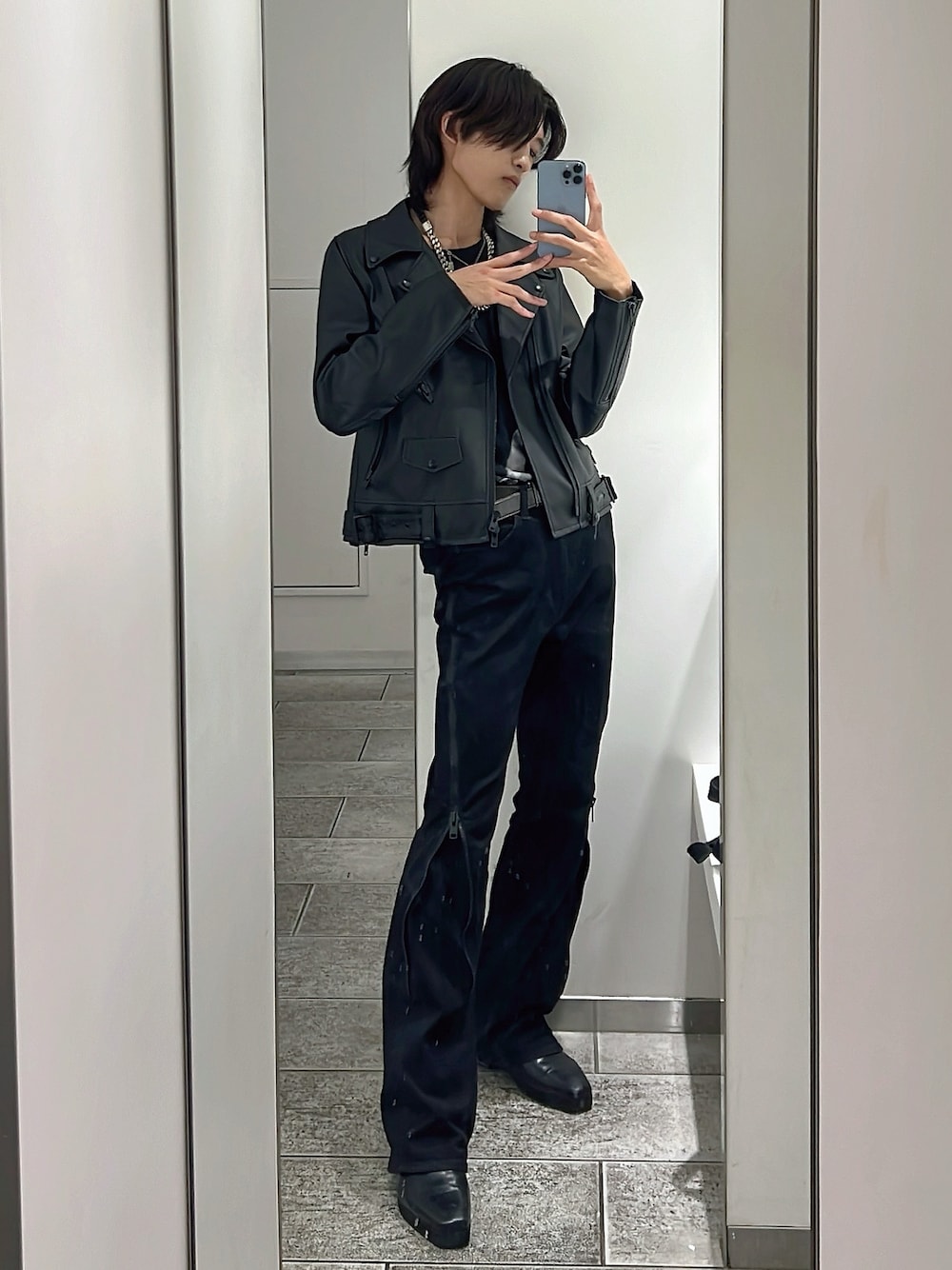 短丈のライダースにフレアパンツ合わせるのめっちゃ好き(・ ∀ ・)