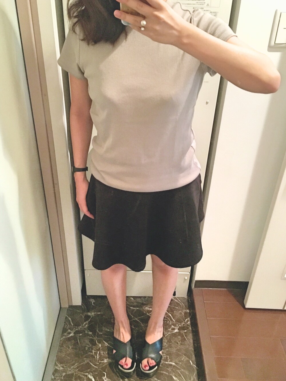 ユニクロのリブクルーネックT🙌🏻 めちゃカワ〜💓💓💓 いつもユニクロはMだけどこれはXLにした😇