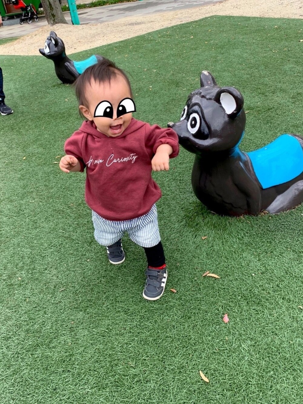 家族でちょっとした遊園地へ🎢💨 芝生もありピクニックも☆ たくさん動けて楽しんでました♡ パンツはお姉ちゃんのお下がり! やっと90cm履ける様になった!